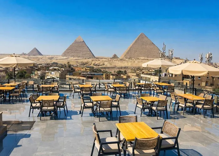 Situado a tan solo 400 metros del Templo Funerario de Keops, el hotel está al alcance del espectáculo de Sonido y Luz. El hotel Golden Kayan Pyramids View está a 1,1 km de las Pirámides de Guiza en El Cairo. Además, esta propiedad está a 20 minutos a pie de la Pirámide de Kefrén, y la estación de tren El Giza se encuentra a 10 minutos en coche. La parada de autobús Giza to Cairo también está situada cerca de este hotel.